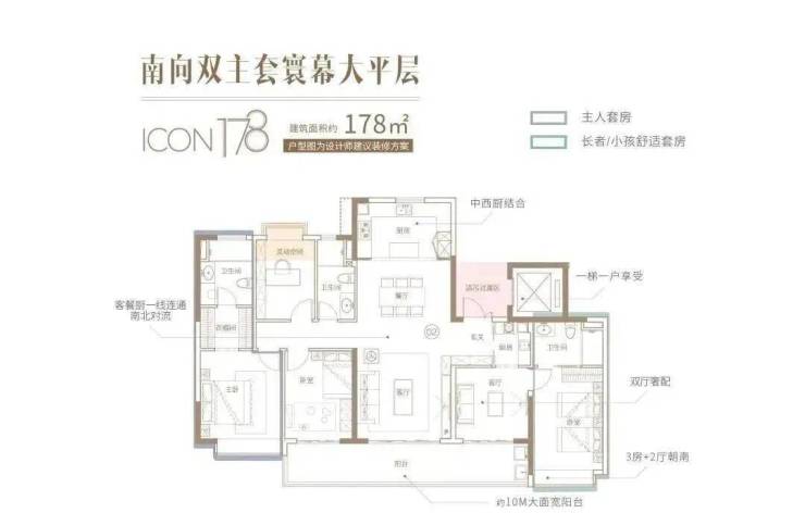 越秀·明珠天悦江湾在户型设计与装修方面独具匠心。以建筑面积约178㎡户型为例,拥约10m大面宽阳台,建筑面积约135㎡享约6.6m大面宽阳台,彰显阔绰大气。户型采用阔绰双主套设计,以阳台 - 客厅 - 餐厅为轴芯,实现三代人的生活分区,互不干扰。双大堂设计,专梯奢享,给业主宛若一梯一户的归家体验。除#21和叠墅为毛坯外,其余为精装修。基于越秀品牌实力,精装修部分可推测采用高品质装修材料,注重工艺细节,全方位满足业主对舒适生活的追求,打造温馨舒适的家园。
