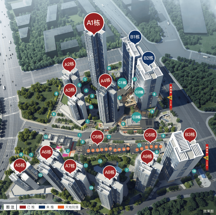 楼栋规划:12 栋建筑,含 9 栋 17-33 层住宅、3 栋公寓
