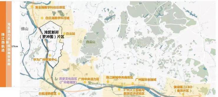 五矿・招商・江天际所处的湾区新岸(罗冲围)片区,是广州市重点推进的城市更新核心片区,白云区以广州在罗冲围片区推进 “统筹做地” 模式为契机,对片区进行整体规划、连片开发,未来将重点打造湾区新岸城市更新标杆,推动片区城市面貌、产业结构、人居环境的全面升级,片区发展潜力持续释放。作为广州中心五区内为数不多的可连片开发的滨江板块,湾区新岸(罗冲围)片区被官方定位为广州西部产城融合新地标,将打造成为集科技创新、滨江休闲、高端人居于一体的现代化新城。