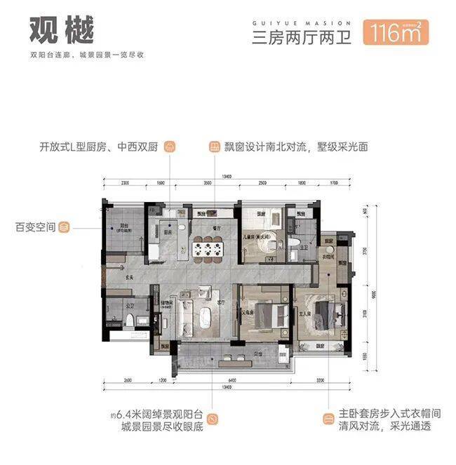 (二)116㎡四房两厅两卫:改善优选,南北对流,社交属性拉满