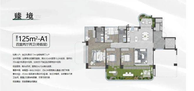 项目主力户型为 82㎡ - 125㎡的三至四房,户型设计合理,充分考虑了居民的居住需求。户型方正,减少了空间浪费,提高了空间利用率。部分户型设置独立玄关,增加了空间的私密性和收纳功能。动静分离设计,将活动区与休息区有效分隔,避免相互干扰,保证了居住的静谧性。主卧带空中花园的设计,不仅提升了主卧的舒适度,还为业主提供了一个专属的私密花园空间,可用于种植花草、阅读休闲,进一步提升了居住品质。这种合理的户型设计,满足了不同家庭结构的居住需求,无论是新婚夫妇、三口之家还是三代同堂,都能在这里找到理想的居住空间。