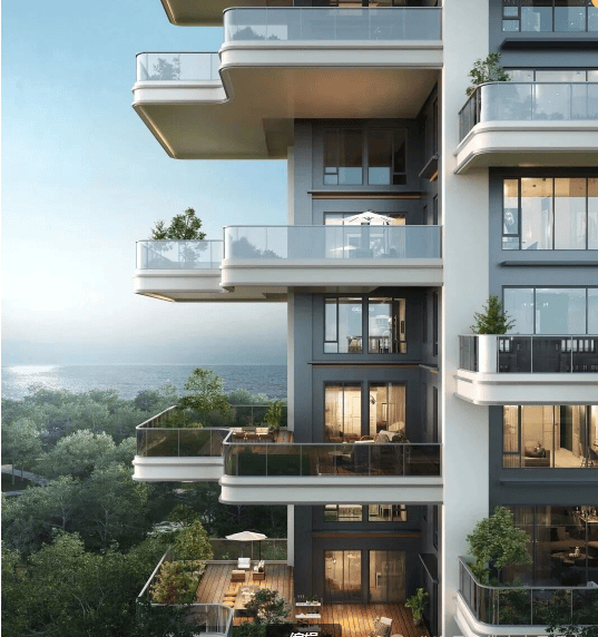 2. 6.2米挑高空中露台:每一户都配备了6.2米挑高、4米多宽度的空中大露台,采用上下楼错开设计,不仅提升了采光和通风效果,还为业主提供了私属的户外空间,可用于种植、休憩、社交、亲子互动等多种场景,真正实现了“家家有花园,户户有庭院”的居住梦想。