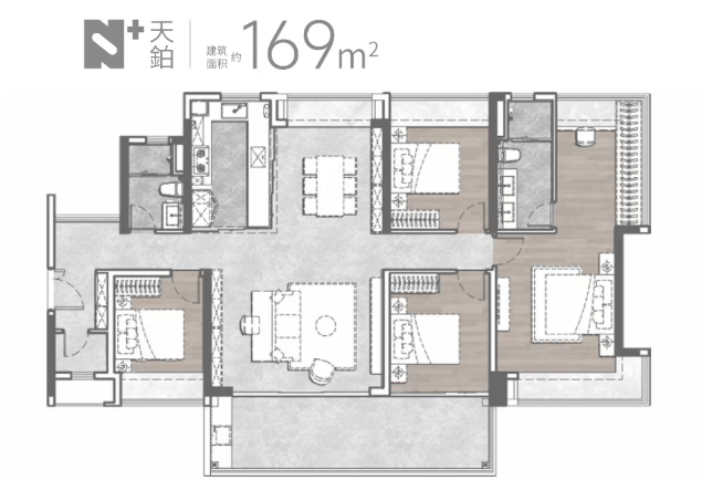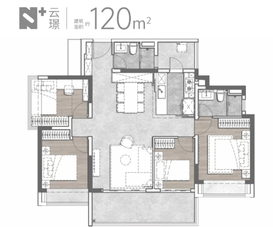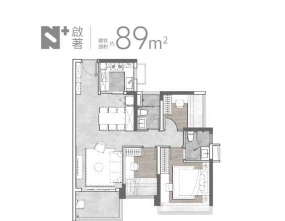 项目主打建面约89-169㎡的跃级三至四房户型,所有户型均采用LDKB互通设计,保证了舒适通风采光及家人交流互动空间。特别值得一提的是,项目使用了新规后板块内采用的20%阳台建设比例,使得项目使用率直逼“100%”。