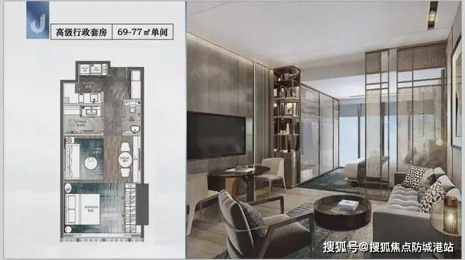 高级行政套房(69-77㎡):适合单身贵族或小家庭,空间布局紧凑,功能分区明确。