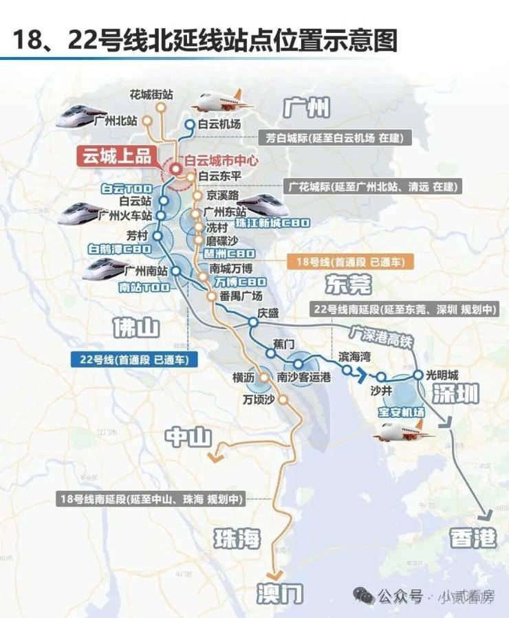 项目的核心价值,首先锚定在广州地铁集团亲自擘画的“轨道上的生活”。项目为白云城市中心站(在建) 正地铁上盖,该站为广州地铁18号线北延段(广州东站-花都天贵)与22号线北延段(芳村-机场北)的交汇站。根据《广州市轨道交通线网规划(2018-2035年)》(穗府函〔2023〕156号),这两条线路设计时速高达160公里,是粤港澳大湾区西岸走廊的南北向高速走廊。