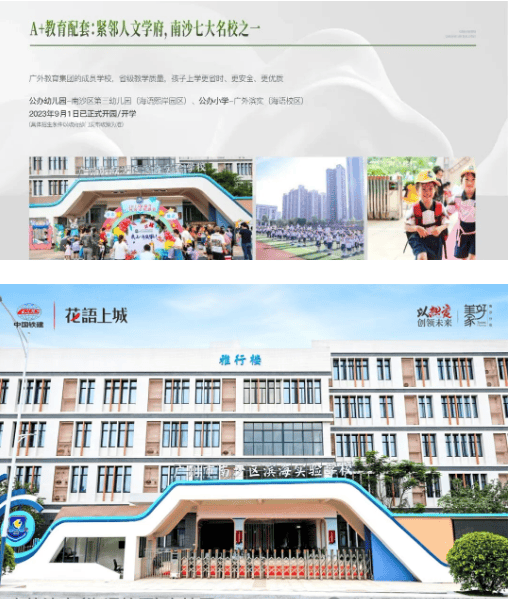 项目最大教育亮点在于步行即达广州外国语教育集团旗下——滨海实验学校南校区(九年一贯制),该校为南沙顶尖公办学校之一,师资与课程体系均属第一梯队。