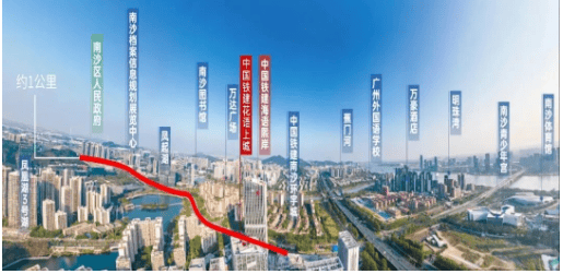 北接庆盛枢纽,南连明珠湾金融岛,西通黄阁汽车产业城,东达南沙湾滨海片区;