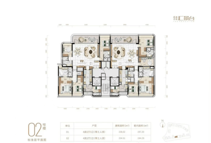 侨鑫保利·汇景台的产品线极为丰富,涵盖了从刚改到终极改善的全方位需求。项目由14栋12层的小高层组成,产品面积段跨度从123平方米至352平方米,共推出了8种经典户型,满足不同家庭结构的居住偏好。