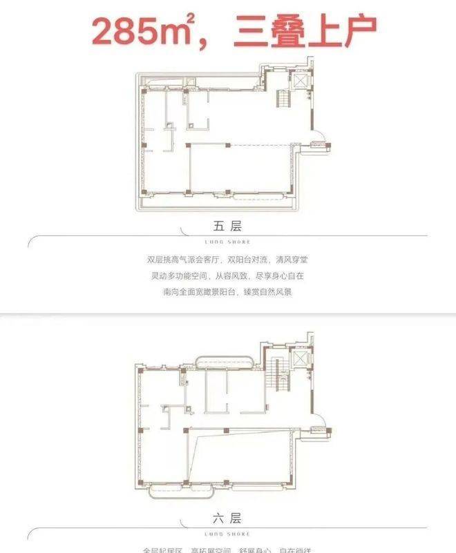 项目户型设计多样且亮点突出。洋房户型为 140㎡ - 270㎡四房双主套,满足不同家庭结构的需求。如 270㎡环幕江景四房的王牌户型,约 9 米超大邮轮式阳台,一线望江无遮挡,专梯专户设计,营造出墅级空中双花园,约 28㎡超大私家庭院增加了生活的趣味性,约 42㎡超大主卧空间搭配 270° 环幕江景以及阔绰双主套房设计,尽显奢华舒适。约 200㎡一线临江环幕大宅,270° 环幕三江视野,独立电梯入户,多功能入户花园,半开放式厨房,双主套房设计,同样展现出高品质的居住体验。叠墅产品更是独具特色,两叠和三叠户型实用率高,花园面积大。两叠上叠面积 392㎡,花园面积区间约为 123 - 298㎡,天台面积约为 93㎡,实用率 193 - 259%;下叠面积 437㎡,花园面积区间约为 357 - 797㎡,实用率 229 - 338%,每个户型均为 4 + 1 房设计,最高可做到 7 房。三叠上叠面积 285㎡,首层花园面积区间约为 27 - 90㎡,天台面积约为 108㎡,实用率达到 178 - 274%;中叠面积 279㎡,首层花园面积区间约为 76 - 223㎡,实用率 122 - 172%;下叠面积 305㎡,首首层花园面积区间约为 233 - 517㎡,实用率 238 - 355%,三叠户型最高可做到 6 房。多样化的户型设计,满足了不同购房者对空间和功能的需求,为业主打造个性化的居住空间。