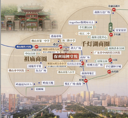 保利锦鲤堂悦定位禅桂核心全维学府大盘,是祖庙街道首个新规标杆住区,择址逻辑紧扣城市核心地段、教育资源、交通枢纽与成熟配套,兼具稀缺性与高实用性。从区域战略价值来看,项目占位祖庙街道核心板块,地处禅城与桂城交汇枢纽,3公里可达祖庙老城芯,3个红绿灯直达千灯湖CBD,同时承接禅桂双城发展红利,既拥有老城成熟生活底蕴,又能享受新城高端商业、商务配套,地段价值无可替代。在城市人文底蕴层面,祖庙作为佛山传统文化核心区域,历史氛围浓厚、生活氛围成熟,配套完善度高,居住氛围纯粹,是佛山本土家庭高度认可的优质居住板块。从自然资源与居住环境来看,项目3公里范围内覆盖中山公园、千灯湖公园、岭南明珠体育馆等生态休闲资源,既能享受城芯繁华,又能亲近自然绿意,实现动静相宜的理想居住状态。作为区域稀缺新规小区,项目在户型格局、空间利用率、居住舒适度上实现全面升级,搭配全龄教育资源与便捷交通网络,完美契合刚需上车、改善置换、教育置业等多重需求,在同价位段产品中具备极强竞争力,这也是项目持续热销、稳居流量榜首的核心原因。