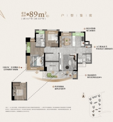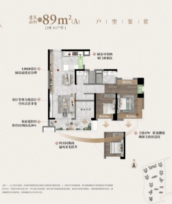 保利锦鲤堂悦主推89-139㎡三至四房新规户型,得房率高达100%-110%,全系采用LDKB一体化设计,空间通透、采光优越、实用性拉满。89㎡A户型为正南向三房两卫,三开间朝南采光充足,户型方正动静分区,主卧套房设计兼顾私密与舒适,是刚需上车优选户型,均价约1.58万/㎡。89㎡C户型南北对流三房两卫,空气循环流畅,全明格局无暗间,空间利用率极高,居住舒适度优于同面积段产品,均价约1.6万/㎡。106㎡四房户型配备6.2米阔景大阳台,南北通透格局,多功能空间可满足家庭成长需求,均价约1.65万/㎡。122㎡四房两卫采用LDKB一体化设计,四开间南向布局,采光面宽阔,公共空间开阔大气,适合改善家庭。139㎡央景楼王户型得房率高达110%,2梯3户低密度规划,阳台占比升级至20%,环幕景观视野,空间奢阔尺度感十足,是高端改善优选。全系户型遵循新规标准,高使用率、大采光、强通透,完美契合当代家庭居住需求。