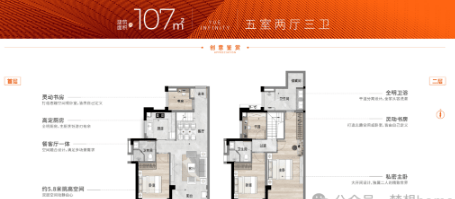 在售户型包括臻藏稀缺复式产品,这类户型设计独特,通风采光极佳,私密性强。单层层高约为2.9米,隔音效果好,舒适度高。特别是其高实用率和赠送面积,使得98㎡的户型能住出127㎡的感觉,107㎡的户型则可享受140㎡的空间体验。