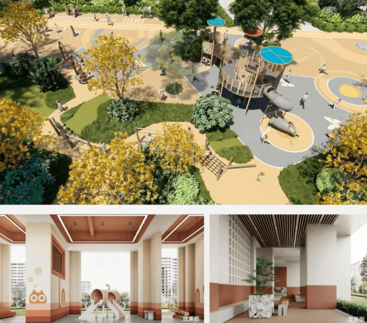 更为贴心的是,项目利用住宅楼栋的架空层,打造了多个主题泛会所,涵盖了儿童游乐、青年健身、茶余闲聊、长者活动等全龄段的活动空间,无论刮风下雨,业主都有丰富的休闲去处。