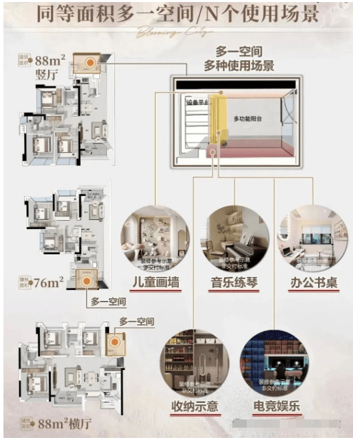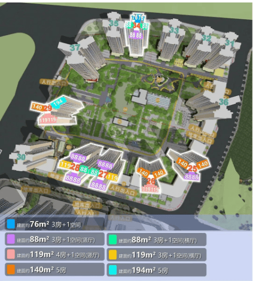 目前在售的主要为五期和加推的六期房源,户型多样,面积从76平方米至194平方米不等,满足不同家庭的需求。特别是新推出的34-35号楼,以26层的小高层设计,南向望花园,为居民提供了更佳的居住体验。此外,所有户型均采用高品质装修标准,并配备了智能化家居系统。