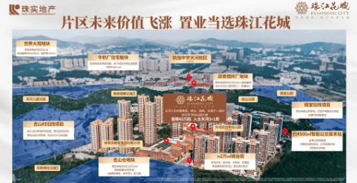珠江花城位于天河智谷板块,由广州珠江实业开发股份有限公司打造。总占地面积约30万平方米,建筑面积约为85万平方米,规划为六期开发,提供超过5300户住宅单位。该项目以其丰富的教育资源、宽敞的户型设计和优质的社区配套而著称。