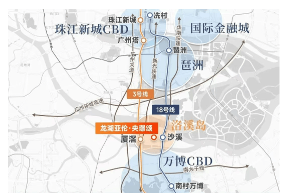 项目北临珠江后航道,南靠三支香水道,部分高层户型南北皆可观江景,景观资源得天独厚。毗邻番禺白宫(拟改建为商业体),为未来生活增添商业活力。虽周边存在沙溪村与厂房,城市界面有待提升,但随着区域发展,潜力可观。交通上临近地铁3/18号线,自驾有新光快速与华南快速加持,与万博、琶洲、珠城等核心区域联系紧密,成为市区改善置换及在核心区工作人群的关注焦点。
