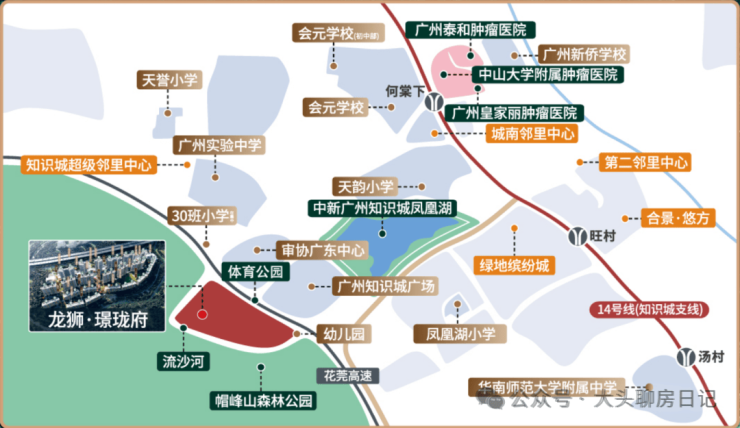 龙狮·璟珑府地处凤凰湖与九龙湖两核心板块交汇的中心区域,地理位置得天独厚,享受双湖+山体的稀缺生态资源。项目背靠有“广州绿肺”之称的帽峰山森林公园,周边环绕约30万平方米凤凰湖湿地公园和约300万平方米九龙湖湿地公园,双湖加持、群山环抱,每日可私享源源不断的负氧离子,生态环境优越,是知识城板块难得的生态宜居大盘。凤凰湖片区已汇集知识城广场、知识大厦等相关产业中心,产业与生态实现完美融合;九龙湖片区主打总部经济,未来将构建以“城市化科学园”为特色的知识创新枢纽,知识塔、文化塔等地标群建设完成后,环九龙湖总部核心经济带将成为知识城未来十年的核心CBD,项目可同步享受双板块发展红利,实现生态居住与城市繁华的无缝衔接。