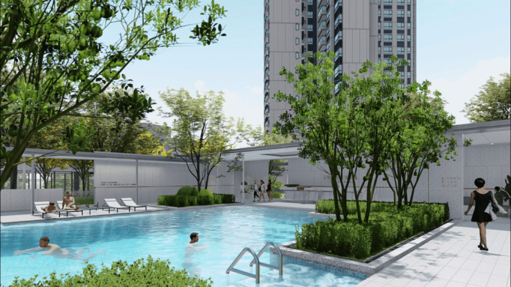 约1100㎡度假式超大泳池,换套衣服下楼便能随意畅游