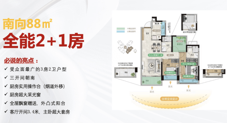 ②全南向楼栋布局:南向设计,阳光非常充足,在整个佛山,都是非常少有的