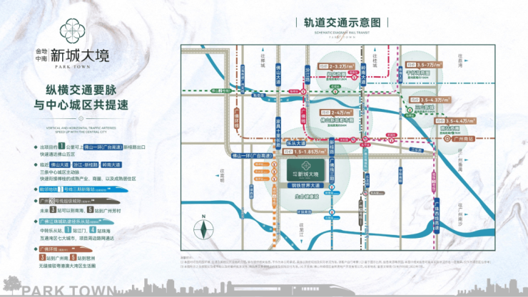 便捷交通路网,近高速、多规划地铁、轻轨、生活极其便捷;10分钟新城,15分钟禅桂,30分钟广州