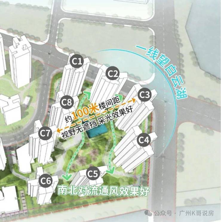 另一方面,三期组团与白云湖区不到100米,还是全南向设计,在整个白云湖板块,亲水性和景观性最好。