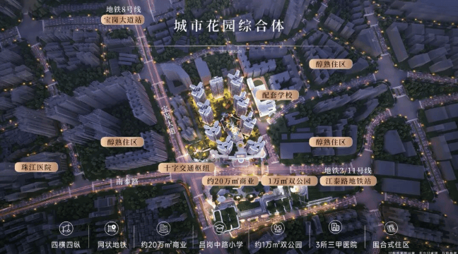 保利海玥所在的南泰路板块,正处于“新旧交替”的黄金交汇点。一方面,周边燕汇广场、万科里等成熟商业环伺,生活便利度极高;另一方面,随着地铁8号线宝岗大道站、2号线江泰路站的双线加持,四轨交汇的便捷交通让这里成为连接老城区与新中心的高效枢纽。我们看到的,是一个正在快速崛起、充满活力的城市新核。