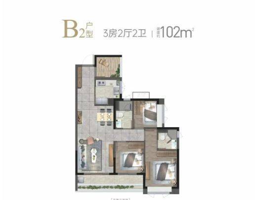 97㎡三房:紧凑实用,适合年轻家庭首置;