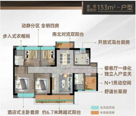 133㎡四房:LDK一体化,主卧套房,兼顾功能与舒适;
