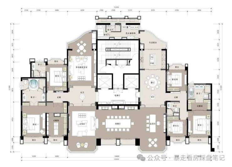 3. 空间价值: 总统级主人套房、双宴会厅、独立电梯厅,功能完整覆盖世家大族的居住、社交、宴请与私密需求。