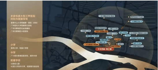 项目5公里范围内覆盖多家优质医疗机构,包括中山大学附属第一医院东院(三甲)、广州医科大学附属第五医院(三甲)、广州市黄埔区中医医院等,医疗资源丰富且等级高,为业主健康提供坚实保障。