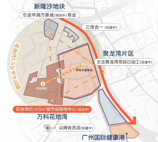 花地湾片区基本都是由万科统一开发,这意味着整个区域的规划具有高度的统一性和连贯性。万科作为城市运营商,不仅仅是建房子,更是在运营一座城。从基础设施的建设,到公共配套的完善,从产业导入,到商业繁荣,万科都在统筹兼顾。这种模式避免了“各自为政”带来的混乱,确保了区域发展的有序进行。