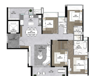 富颐华庭的户型设计从95平方米到208平方米不等,涵盖了3至4居室的多种选择,适合不同家庭结构的需求。所有户型均采用新规设计,空间利用率高,部分户型更是实现了四开间朝南,极大地提高了采光效果和景观视野。