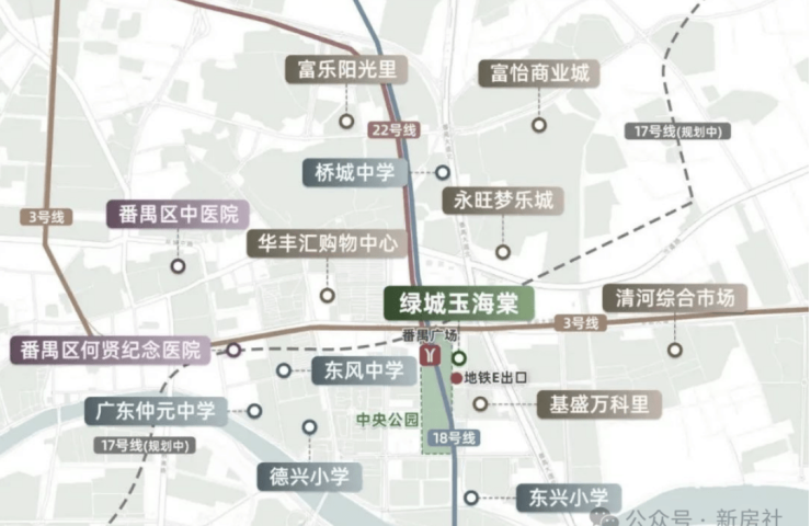 绿城玉海棠拥有番禺核心最强地铁交通资源,是真正意义上的地铁上盖物业。项目与番禺广场站E出口无缝衔接,地铁3号线、18号线、22号线以及规划中的17号线在此交汇,形成四线交汇的TOD枢纽。18号线与22号线均为高速线路,时速可达160公里,可实现30分钟直达珠江新城、琶洲、南沙等核心区域。3号线更是一线贯穿珠城、机场、番禺的重要生活主轴,通达性极强。