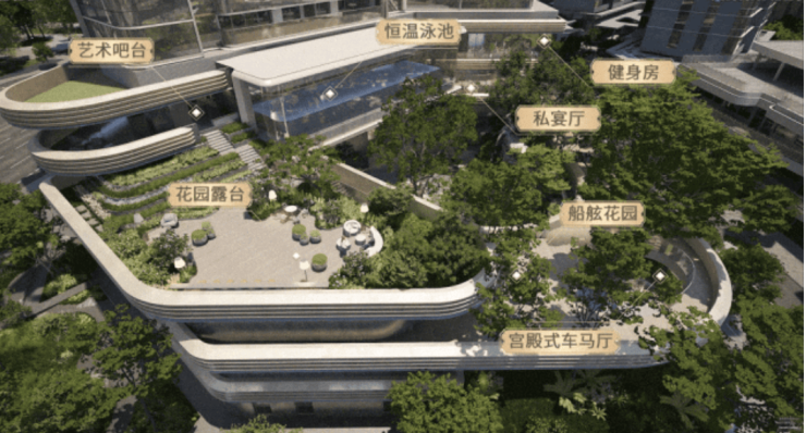 项目占地约2.37万平方米,总建筑面积约4.96万平方米,仅规划1栋住宅,共96户,梯户比为2梯2户和2梯1户,确保住户的私密性与舒适度。项目采用架空四层会所设计,首层住户高度相当于普通住宅的第五层,形成视觉与景观优势,同时隔绝外部噪音,保障尊贵居住体验。架空层上打造船舷花园,结合瀑布、溪流与林泉,营造立体都市秘境,形成独特的景观层次和私密社交空间,体现顶豪住宅对生态、景观及居住品质的极致追求。