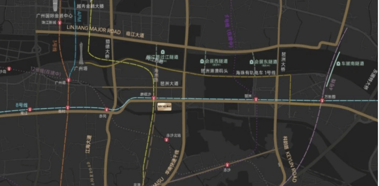 项目毗邻地铁8号线和18号线,8号线可换乘3号线、4号线、11号线及12号线,在城市范围内形成快速轨道通达网络。18号线可直达珠江新城CBD,实现核心商圈的便捷连接。项目毗邻新光快速、华南快速,驾车可直达琶洲港澳客运码头及香港国际机场,通达性极高。得益于地铁上盖和快速路网的结合,住户出行效率极高,无论是日常通勤、商务出行还是跨区域旅行,都能获得城市顶豪应有的高效体验。