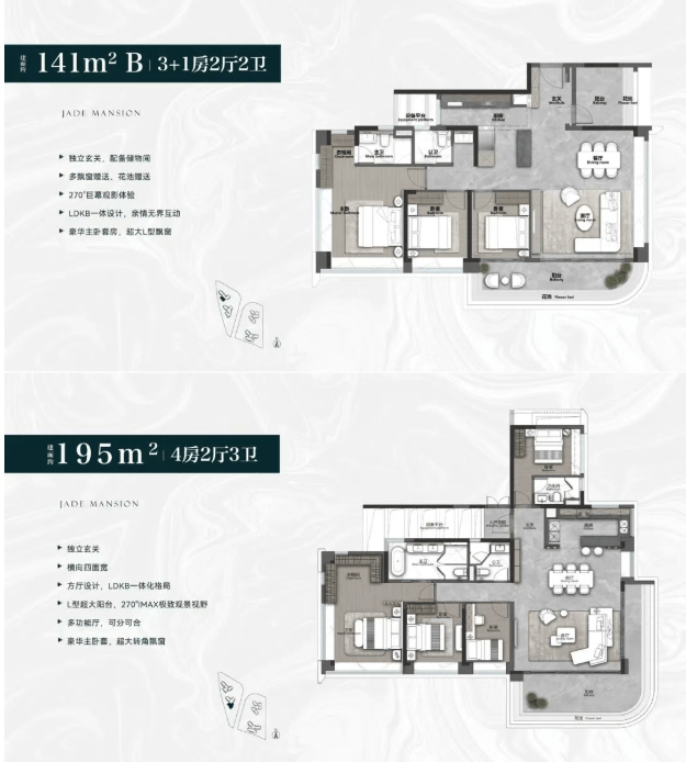 A:项目主打120-195㎡的全南向大平层,采用LDKG设计和长阳台布局,层高3.1米,入户大堂挑高10米。适合追求高品质生活、有改善需求的精英家庭。