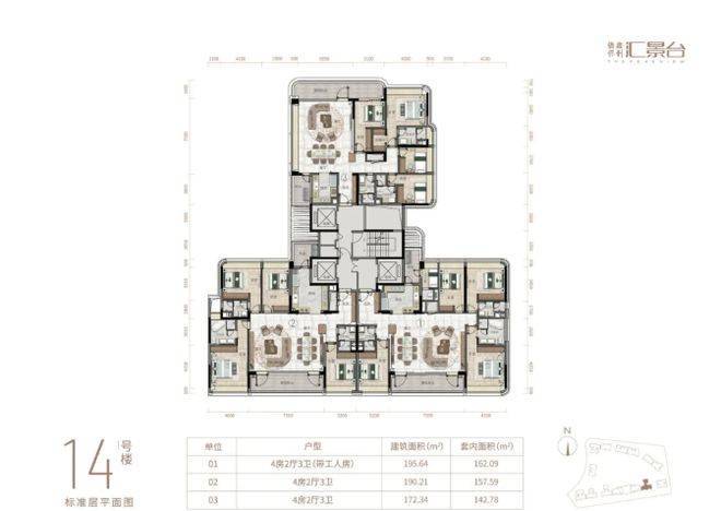 在楼栋规划与建筑高度方面,项目共规划14栋12层小高层住宅,楼栋总数适中,避免了大型社区的拥挤与嘈杂,同时也能保证社区的私密性和居住舒适度。12层的小高层设计,既保证了居住的舒适度,又避免了高层住宅的压抑感,同时也让每一户都能拥有良好的采光和通风条件,搭配科学的楼栋布局,无任何楼栋对视问题,确保业主的居住隐私。建筑高度严格控制在合理范围内,符合天河区的整体规划要求,既保证了社区的采光和通风,又能与周边的自然景观和汇景新城的整体风格完美融合,形成和谐美观的社区形象。