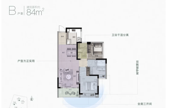 项目所有户型均为全南向设计,户户朝南,采光与通风效果极佳,居住舒适度高;全盘采用 2 梯 4 户设计,上下楼无需长时间等待电梯,出行效率高。部分户型还带有独立卫浴、大阳台,进一步提升居住便利性与空间感。目前项目降价清盘,性价比极高,84㎡三房总价亲民,轻松实现刚需家庭 “买房梦”。
