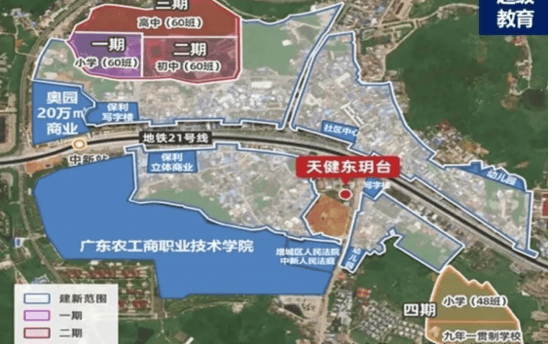 在更高阶段的教育资源上,项目 3 公里内有广州理工实验学校,目前 60 班初中 / 高中华南师范大学附属双语学校正在建设中,未来建成后将进一步丰富区域教育资源。此外,周边还有广州商学院、广州华商学院、广州农工商学院等高校,学术氛围浓厚,能为孩子成长营造良好的教育环境。同时,项目周边还在打造一所 60 班幼儿园,未来将为业主提供更多学前教育选择。
