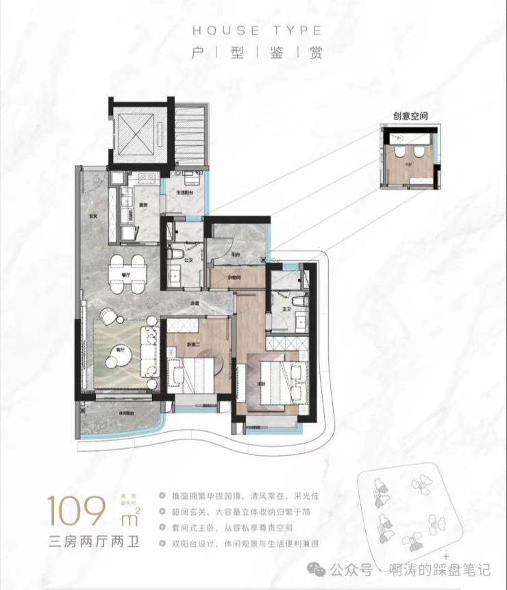 这个户型是高端改善的进阶大平层,拥有更宽阔的空间尺度与更优异的江景视野,非常适合多人口家庭或者追求极致居住品质的家庭。