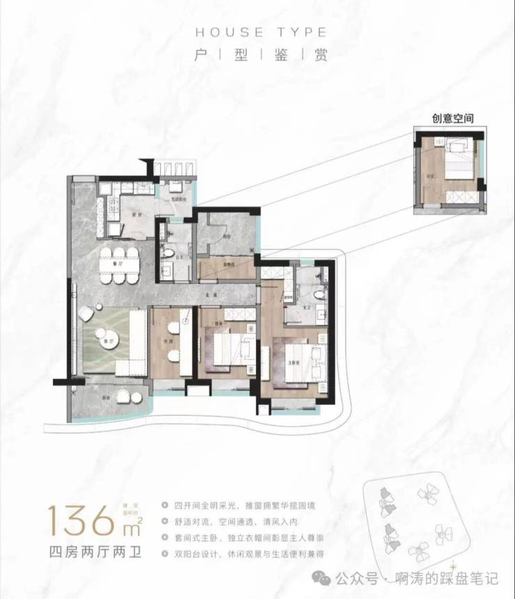 ### 建面约136㎡的四房两厅两卫户型