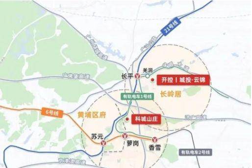 交通上,项目距地铁21号线长平站约800米,步行10分钟可达;更关键的是,有轨电车1号线“羌洞站”就在小区门口,3站到科学城核心区,4站直达天河智慧城,通勤效率在长岭居片区堪称顶级。