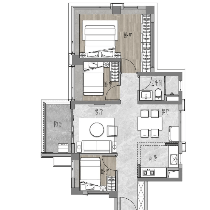 (1)69㎡三房一卫|刚需爆款 总价可控 空间极致利用