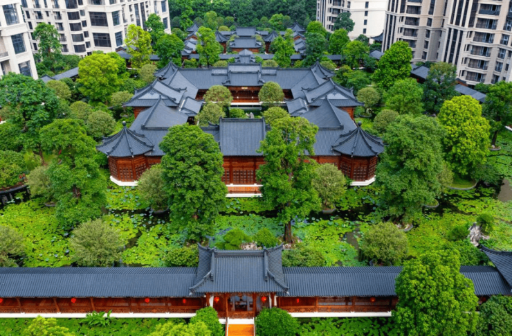 A9:项目园林面积约4.6万㎡,融合晋派大气与徽派精巧,堪称“中式园林当代里程碑”。园林设计极具匠心,千米风雨连廊串联21座亭台廊轩,听雨轩、沉壁台等古建采用榫卯古法,部件原址迁移复建;600余棵百年名树全冠移植,29组奇珍景石(太湖石、英石)点缀其中,96块匾额、30余副楹联取自古典诗词,一步一景皆文化。同时,项目拥有约2.5公里骑江木栈道、晨露园、夕露园及五期独立园林,三面环江,拥万亩湿地公园与高尔夫景观,生态环境优越,私密性极佳,让业主在繁华城央享受与自然相拥的惬意。