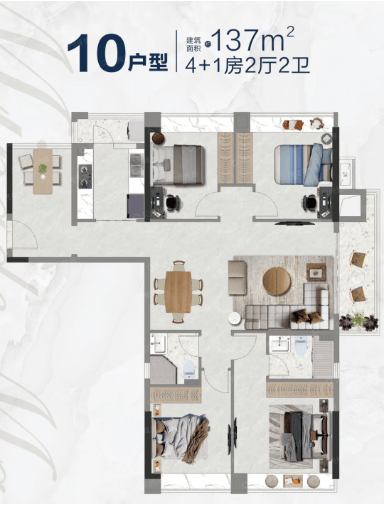 138㎡四房户型:空间阔绰,满足多代同堂家庭的居住需求,客厅、餐厅、厨房一体化设计,公共区域通透敞亮;主卧套房设计,配备独立卫生间与衣帽间,次卧、儿童房、书房布局合理,满足家庭成员不同功能需求;部分户型带飘窗,可拓展使用空间,得房率超85%,空间利用率远超同区域同类产品。