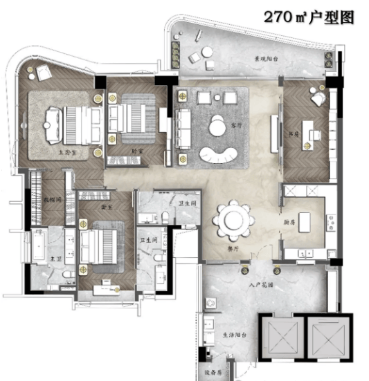 高层洋房方面,主要在售R6-R9栋,均为现楼交付,豪华装修标准,省去业主装修繁琐流程。在售户型面积区间为140㎡-270㎡,均为四房双主套设计,4梯3户配置,3.3米层高,空间开阔、采光通风俱佳,每一户都能享受良好的景观视野。其中140㎡为南向园景大宅,超高性价比,三卧室朝南设计,独立电梯入户,同享两千万豪宅交标配置;200㎡为一线临江环幕大宅,270°环幕三江视野,独立电梯入户,多功能入户花园,简约半开放式厨房,阔绰双主套房设计;270㎡为王牌环幕江景四房,约9米超大邮轮式阳台,一线望江无遮挡,专梯专户,墅级空中双花园,约28㎡超大私家庭院,约42㎡超大主卧空间,尊享高端居住体验。