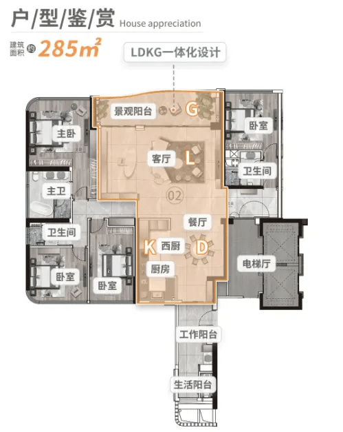 4. 285㎡五房两厅四卫:多代同堂理想之选