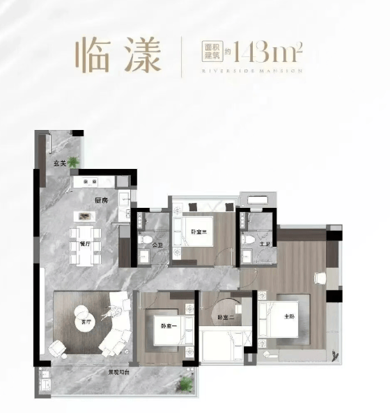 143㎡户型打造 270°IMAX 奢华瞰江体验,超大观景面将珠江盛景、城市天际线尽收眼底,打破传统户型观景局限,实现全景瞰江的视觉盛宴。户型空间阔绰,动线流畅,餐客一体设计拓展公共空间,卧室均带飘窗或观景阳台,每一个空间都能享受江景与阳光,打造奢华舒适的居住体验,契合城市精英的品质追求。