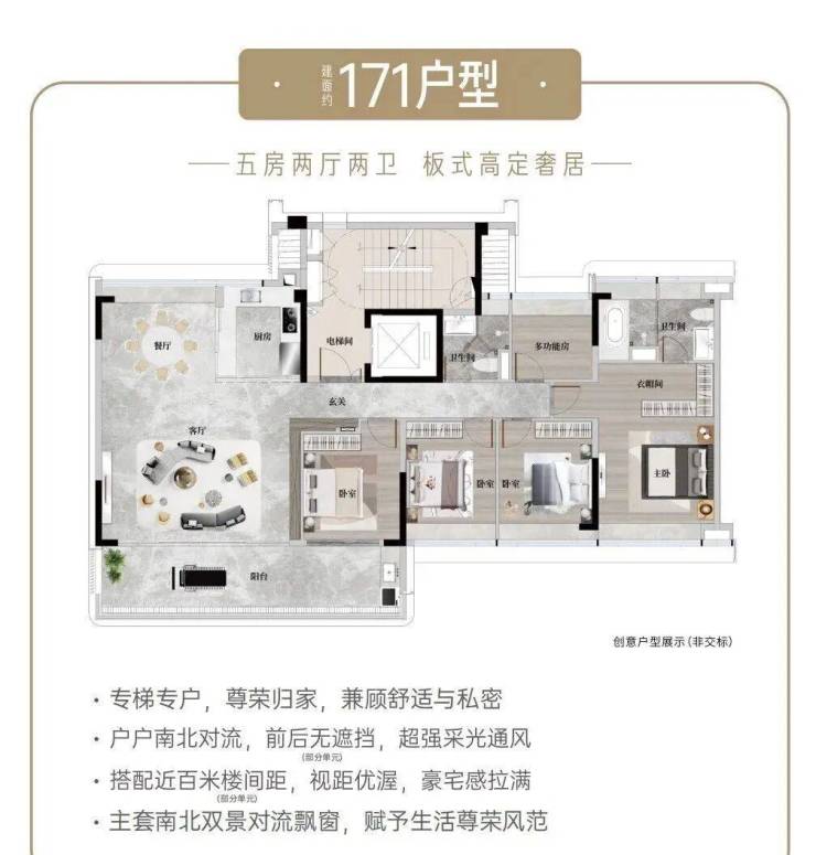每户住宅均经过精心设计,兼顾采光、通风和景观,同时设置专梯入户及低层私家园林,确保居住隐私和舒适度。社区规划涵盖架空层会所、儿童活动区、健身设施及横向园林景观轴,提供高品质、全龄段居住体验,是理想的改善型及高端住宅选择。