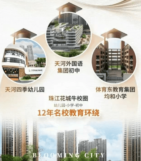 珠江花城的一大亮点在于其优质的教育资源。社区内配建有体育东教育集团均和小学、执信中学天河校区以及天河外国语教育集团公办学校,为业主子女提供了从幼儿园到初中的全龄段优质教育保障。其中,均和小学已连续三年仅对珠江花城招生,确保了生源的纯粹性。此外,社区内还设有天河四季幼儿园及托儿所,满足不同年龄段孩子的教育需求。